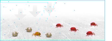 Los ácaros son organismos microscópicos y se calcula que hay entre 100 y 500 ácaros en cada gramo de polvo. Suelen concentrarse sobre todo en las almohadas y los colchones, así como en tapicerías, sofás y alfombras. El ozono ambiental es la mejor opción, ya que este llega a todos los rincones de la estancia y garantiza su aniquilación.