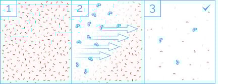 Elimina los olores no deseados, debido a la destrucción de las partículas causantes de este. Realiza esa función de manera directa sin disfrazar el olor con otros más fuertes como puede ocurrir con los ambientadores. Descompone y destruye los agentes patógenos presentes en el aire consiguiendo un ambiente más saludable y libre de cualquier agente extraño que puede conllevar infecciones.